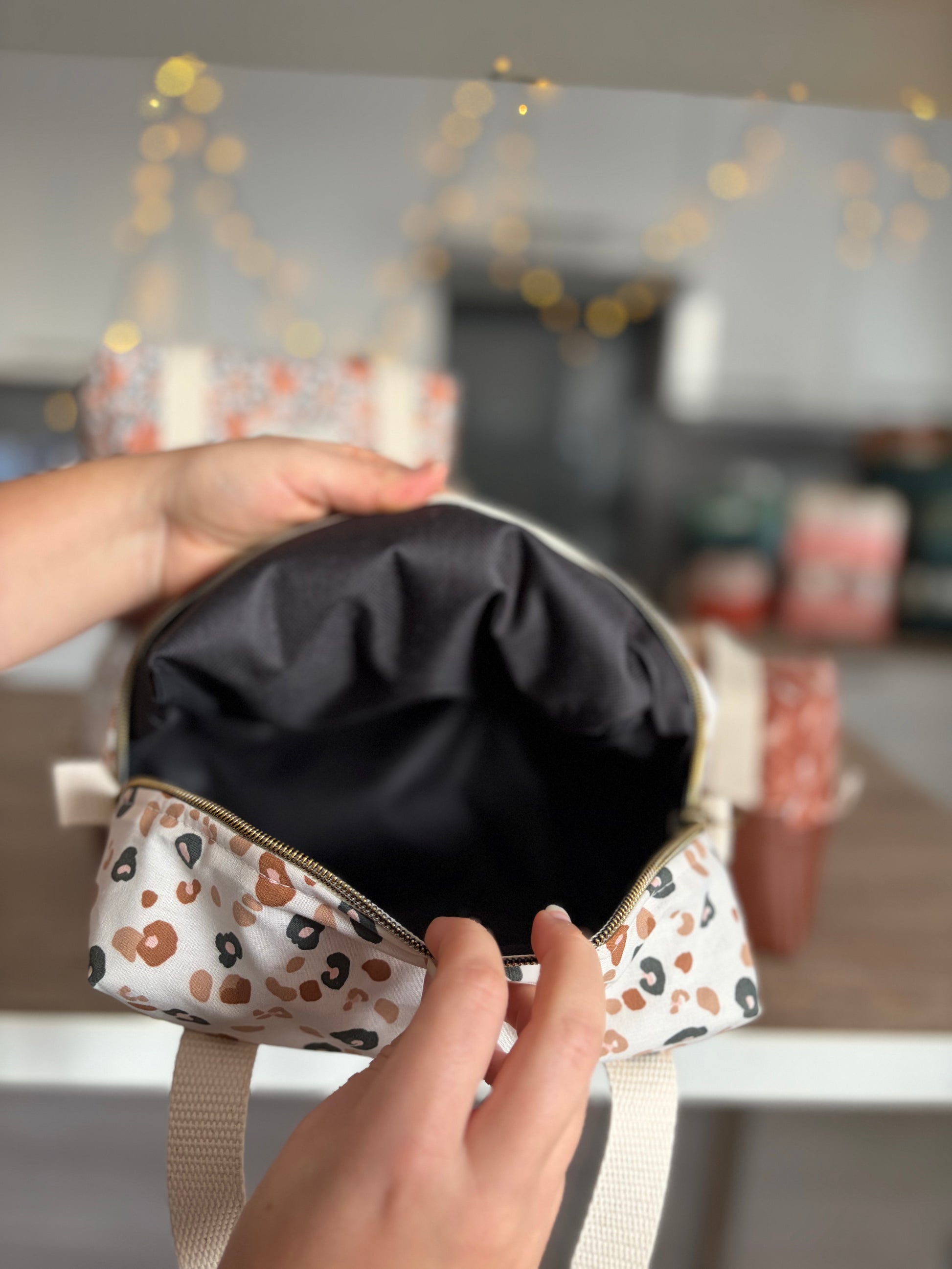 Emporte ton repas partout avec élégance grâce à ce lunch bag entièrement fait main.